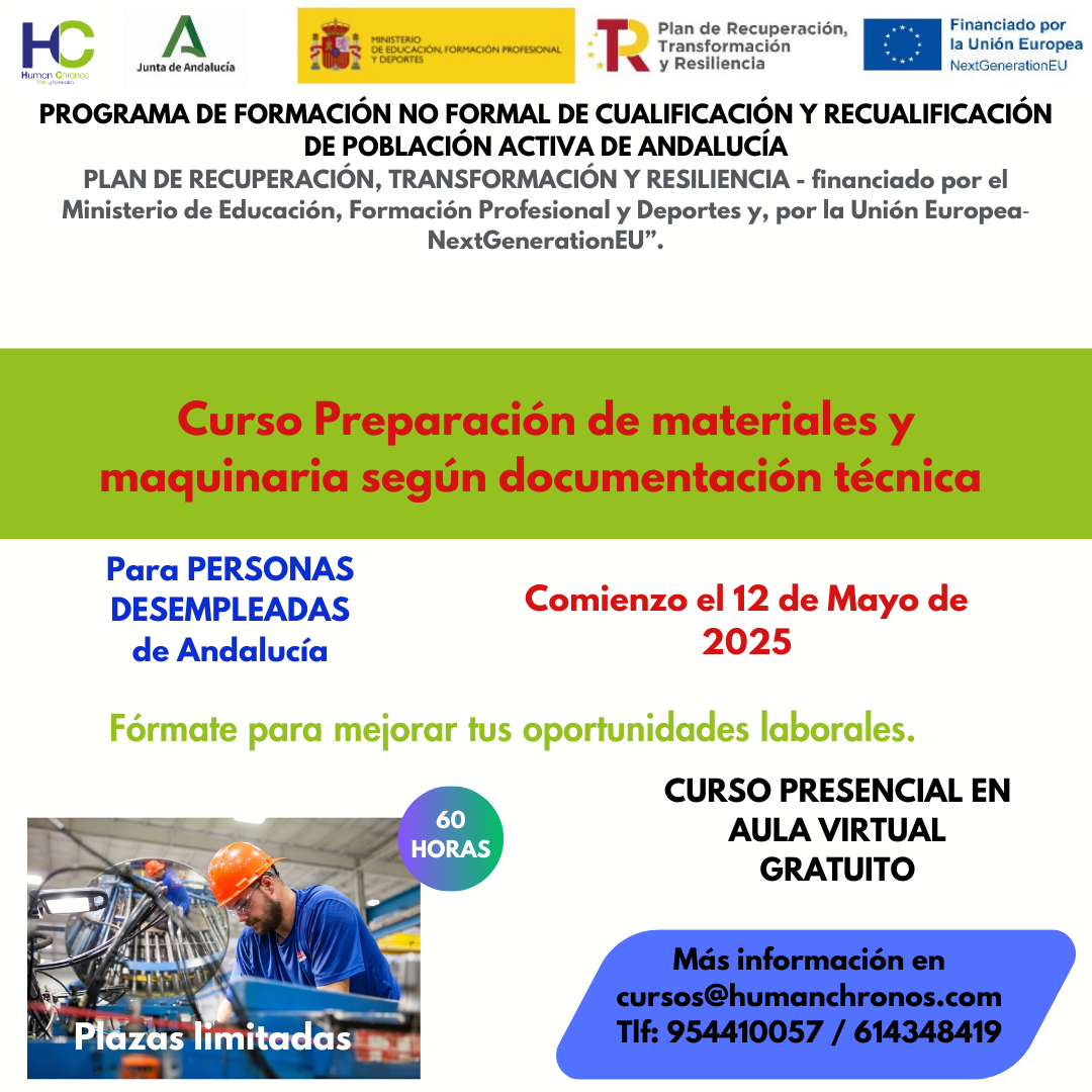 #cursogratis #cursogratuito #cursoandalucia #GRATIS #formacion #cursosgratuitos #formación #profesional #Empleo #educación #desempleadosandalucia #cursosdesempleadosandalucia #maquinaria #documentaciontecnica #materiales #humanchronos #presencial #aulavirtual